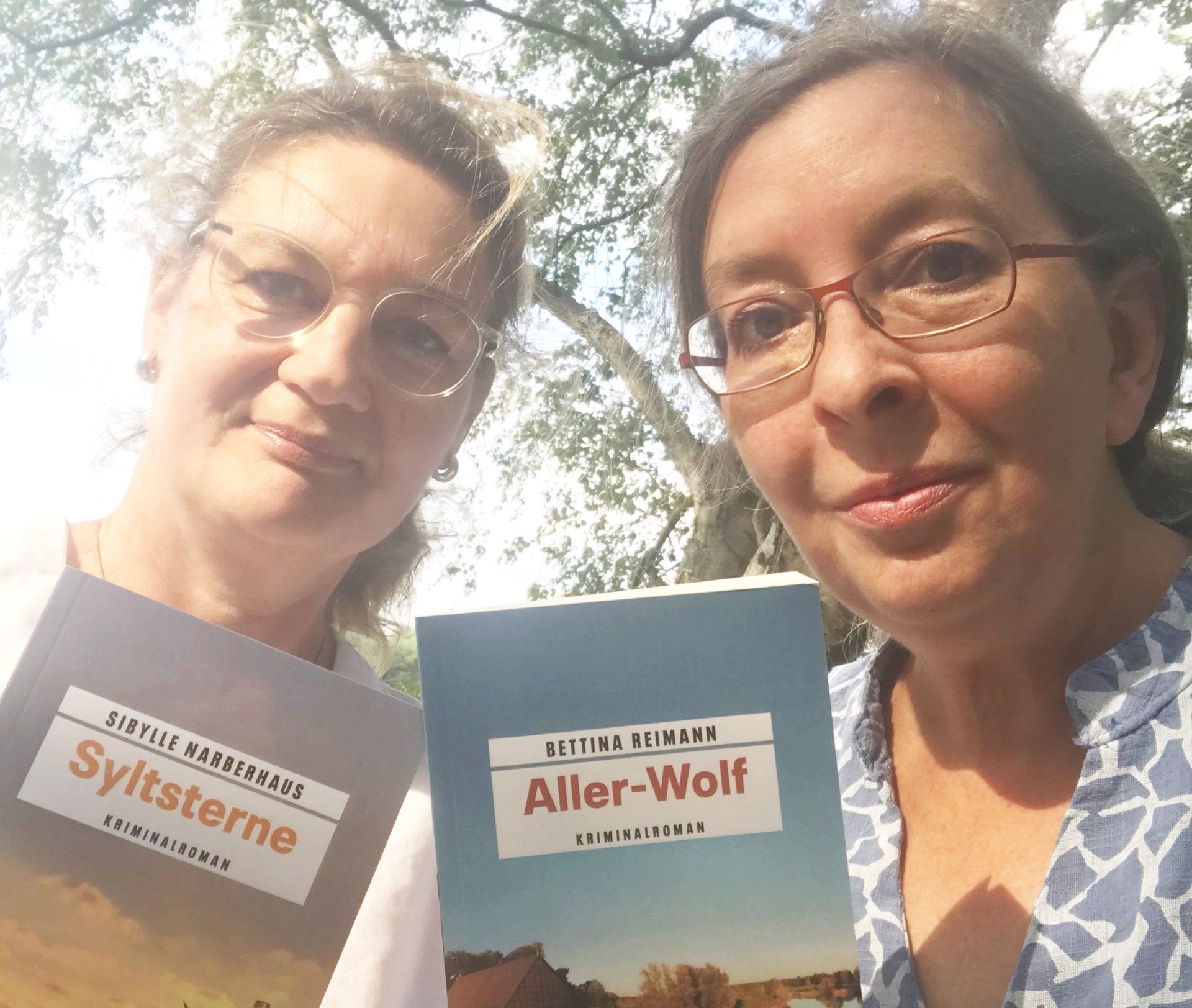 Das erste eigene Buch, der offizielle Erscheinungstag... Da muss doch etwas Besonderes passieren? Doch nach dem Aufwachen stelle ich fest, dass die grauen Haare noch alle da sind, die Glocken nicht läuten, weil der Aller-Wolf erschienen ist und auch sonst alles beim Alten ist. Ein Tag wie jeder andere - wenn frau nicht etwas daraus macht. Und das haben wir - die Kollegin Sibylle Narberhaus aus Garbsen und ich. Ihr Buch Syltsterne (sehr gut! Lesen!) erschien am selben tag im gleichen Verlag. Und wir haben das mit einem kleinen Fotoshooting und einem gemütlichen Essen gefeiert. Dabei haben wir uns übrigens erst kennengelernt - denn außer, dass wir in benachbarten Kommunen wohnen und den Buchgeburtstag am gleichen Tag begehen, wussten wir wenig voneinander. Aber wir haben uns vom ersten Satz an gut verstanden - das war ein toller Abend!